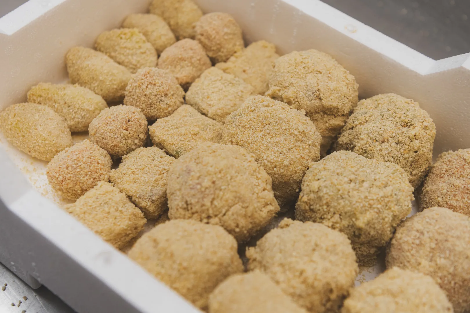 ▫️Crocche (100% Patate, sale, pepe) ▫️Frittatina (Besciamella delattosata, Prosciutto cotto, piselli) ▫️Arancino (Riso allo zafferano, prosciutto cotto, burro no lattosio)